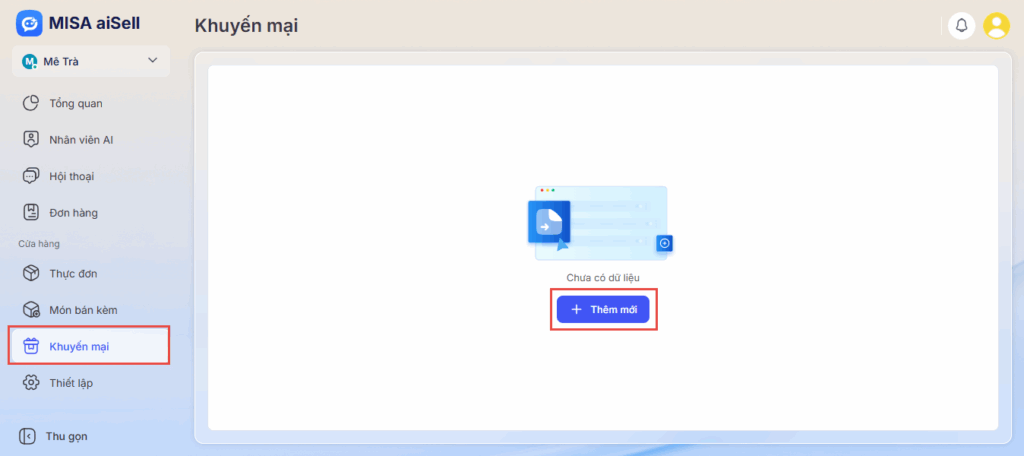 1. Vào mục Khuyến mại, nhấn Thêm mới.