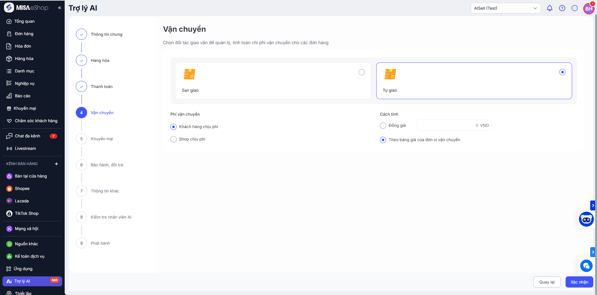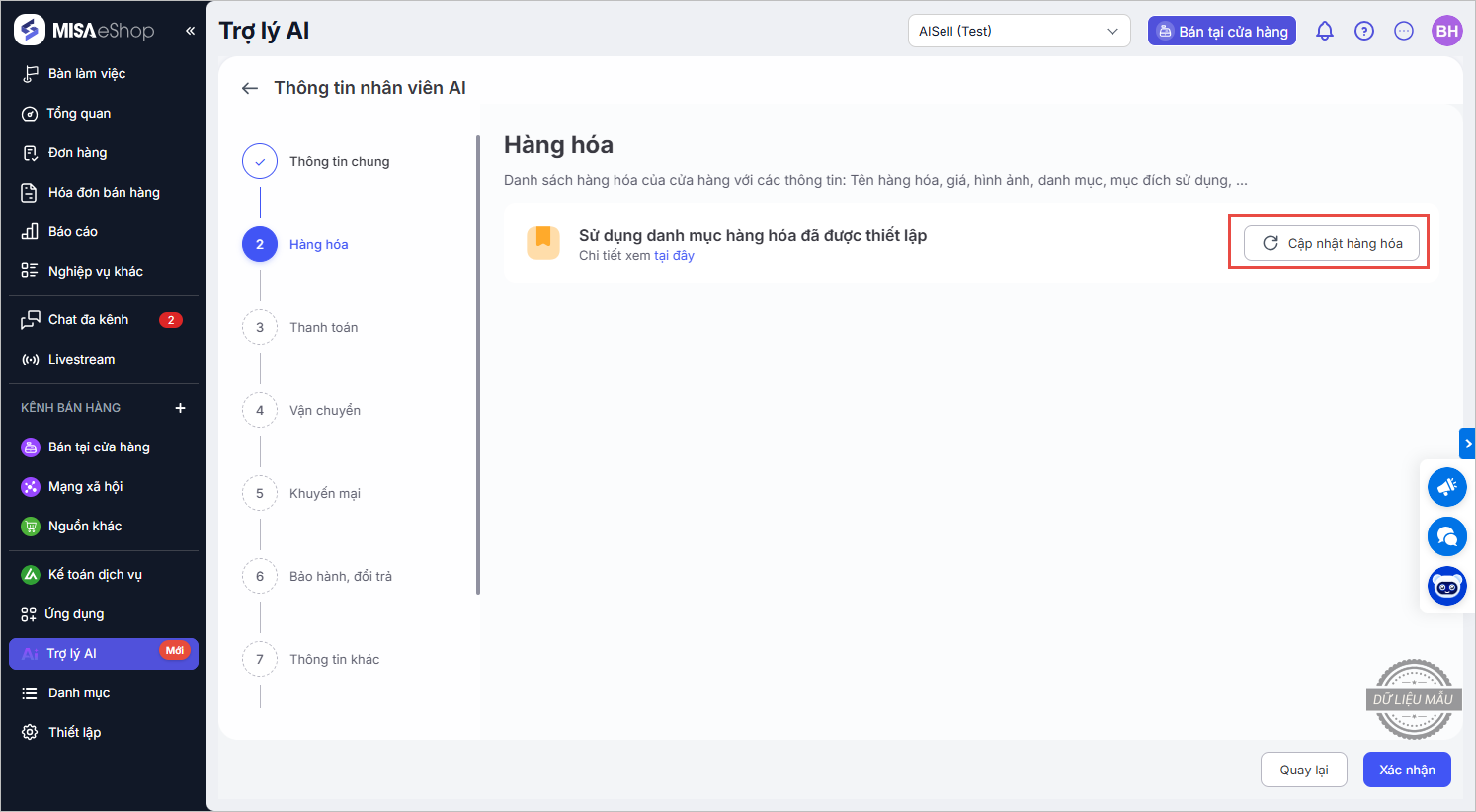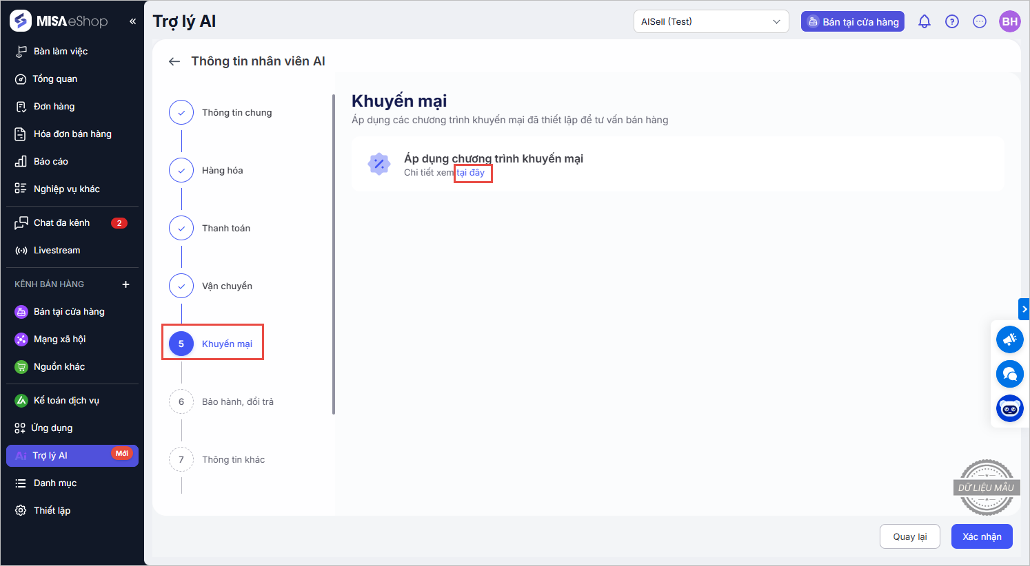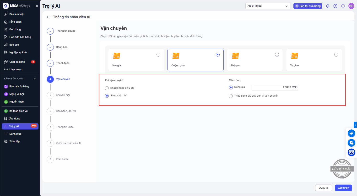- Nhấn Tạo ngay, chương trình tự động thiết kế một nhân viên AI phù hợp với ngành nghề kinh doanh của cửa hàng và tự động điền các thông tin đã khai báo ở bước trước.